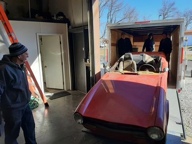 We loaded the car into Dave Mullen’s enclosed trailer and transported it to The Shop for storage